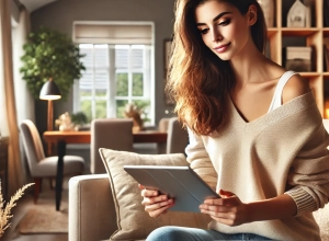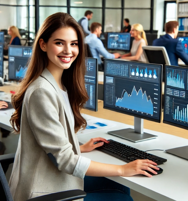 DALL·E-2024-07-19-20.14.12-A-female-employee-of-a-business-center-using-comp...