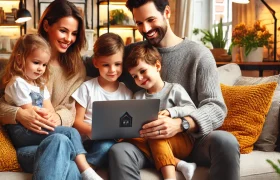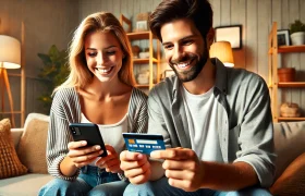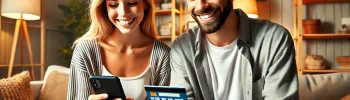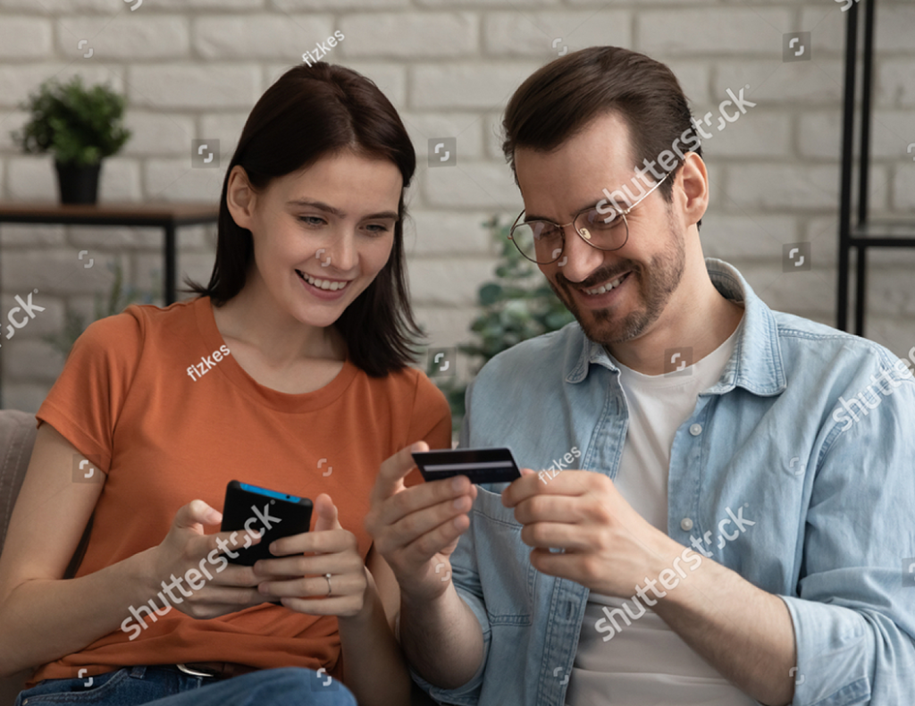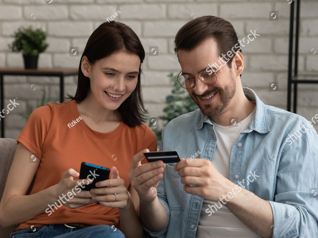 stock-photo-smiling-millennial-caucasian-couple-involved-in-online-shopping-e...