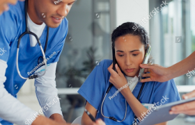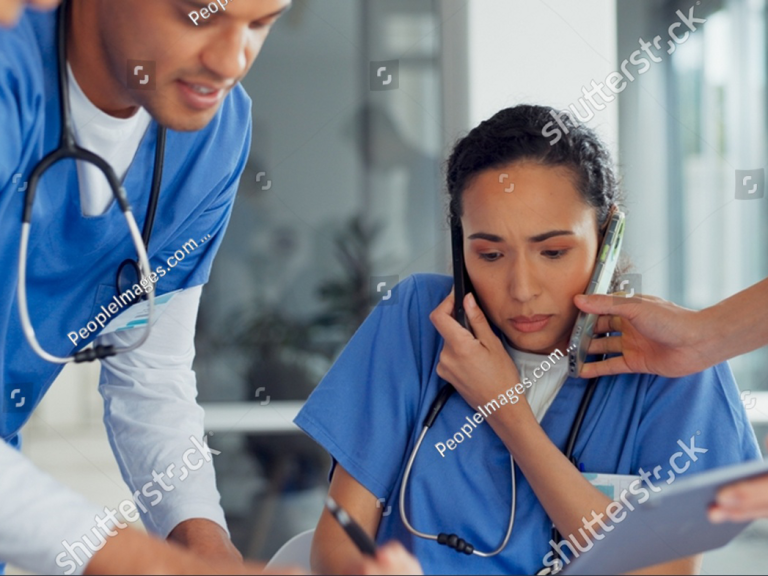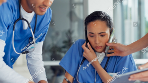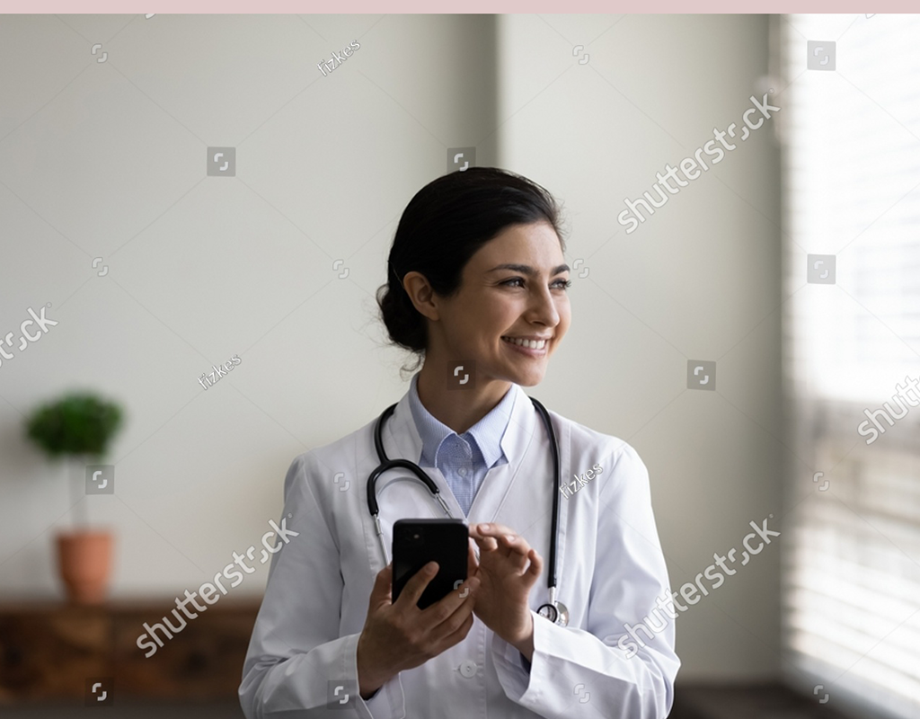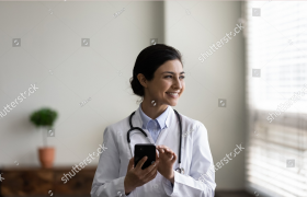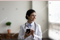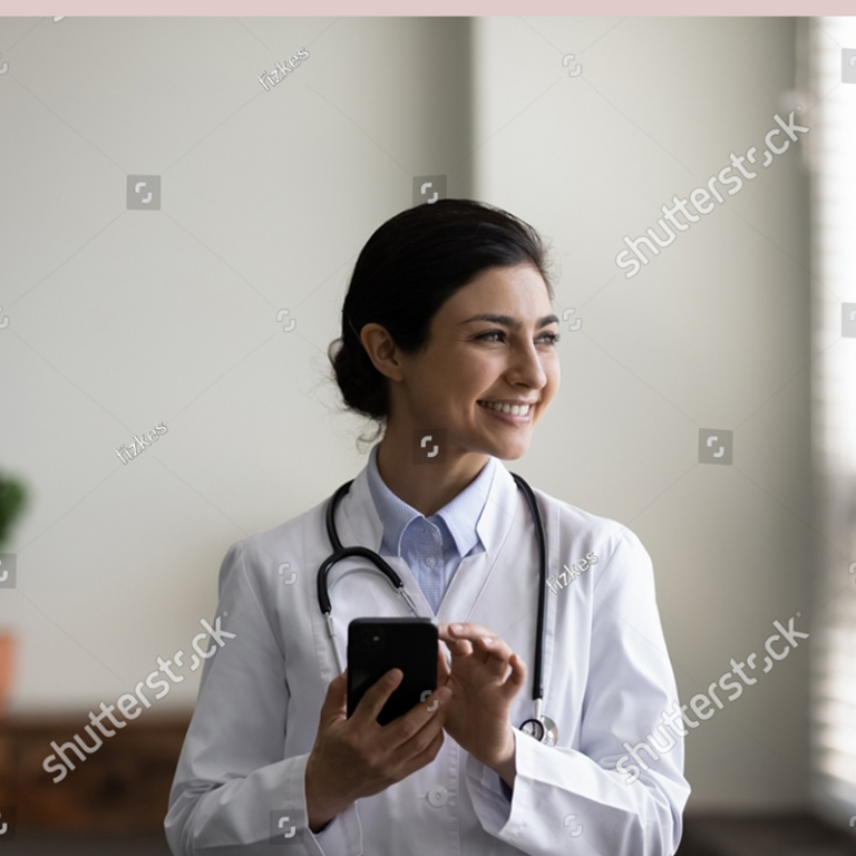 stock-photo-happy-indian-gp-doctor-chatting-online-on-mobile-phone-in-hospita...