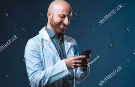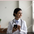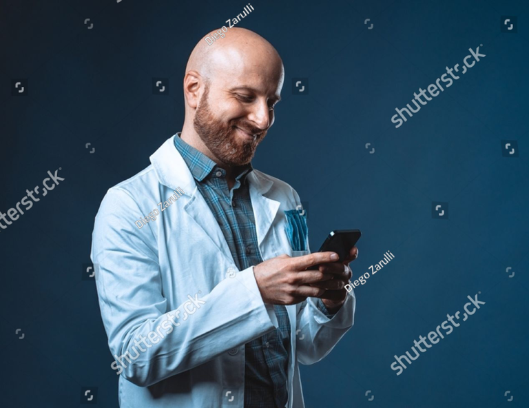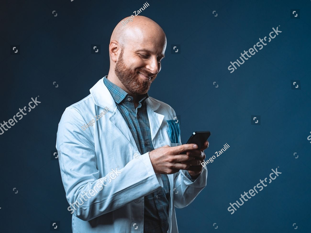 stock-photo-photo-of-cheerful-doctor-with-beard-smiling-and-chatting-at-smart...