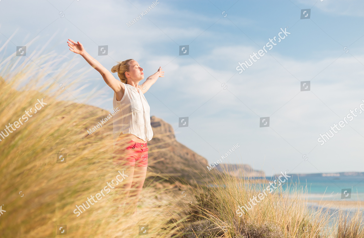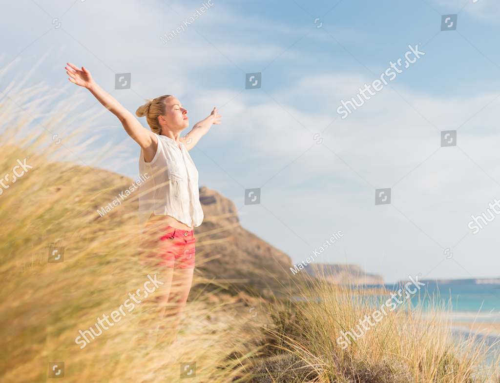 stock-photo-relaxed-woman-arms-rised-enjoying-sun-freedom-and-life-an-a-beaut...