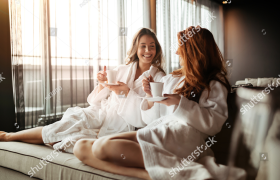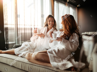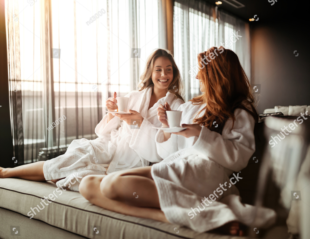 stock-photo-women-relaxing-and-drinking-tea-in-robes-during-wellness-weekend-...